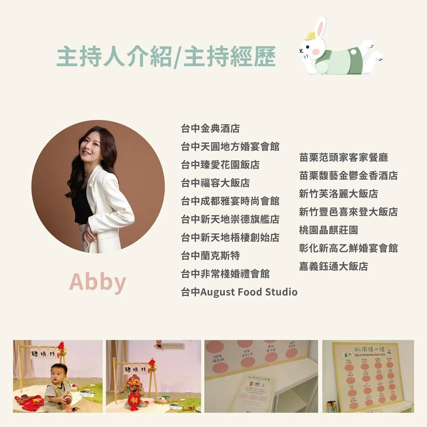 除了幼兒教育,草莓老師也是專業主持人,足跡踏遍各式餐廳、攝影棚、甚至到府抓周!