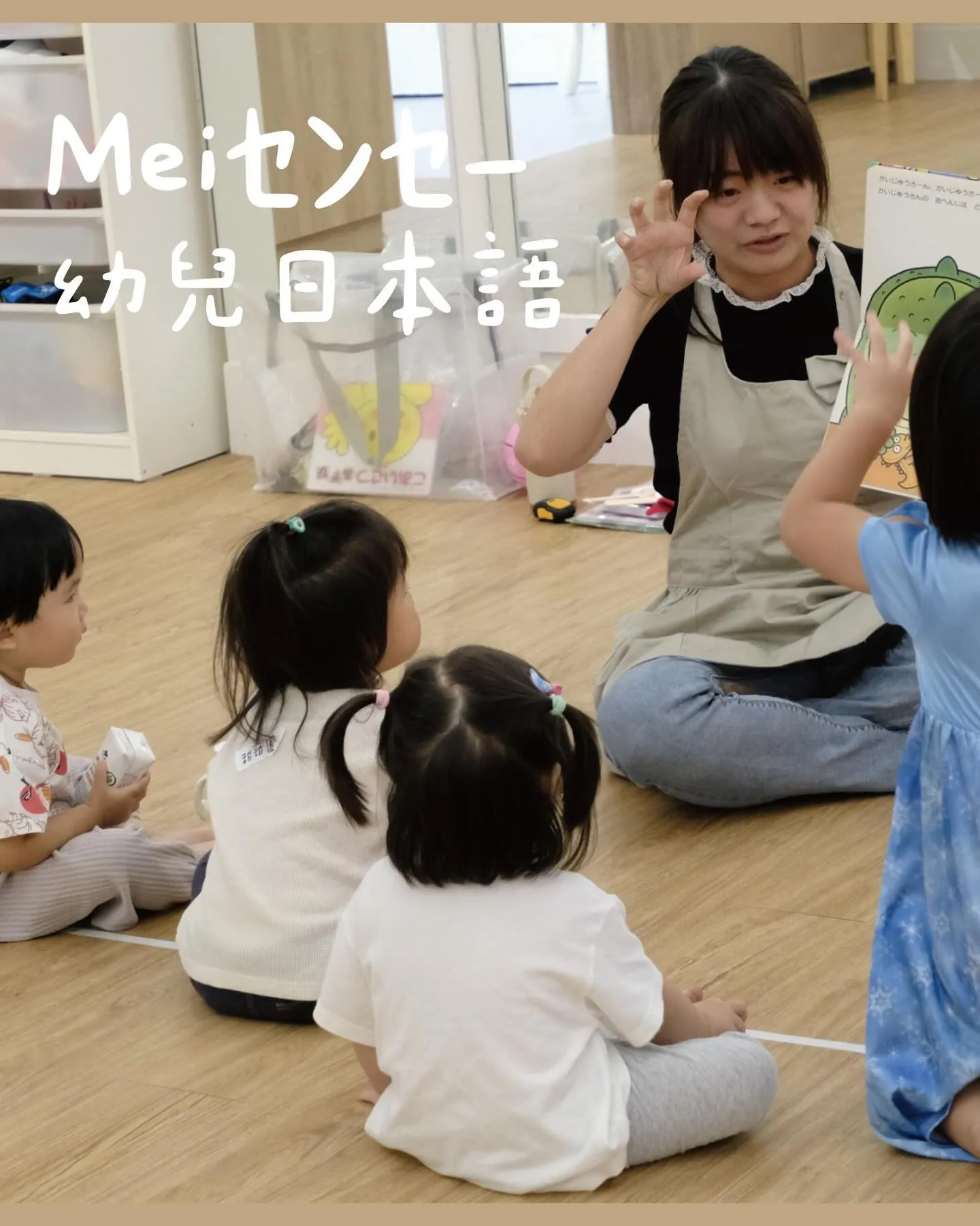 Mei 老師曾在日本保育園擔任子育て支援員,是串聯多國語家庭與日本幼兒教育的溫暖小橋樑。